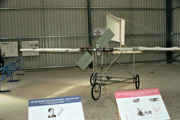 Originally MOTAT sponsored this visit in 2003. Sadly this 'flying' replica is still languishing unpacked in its crate (Sept. 2007). However there are rumours that it might be exhibited by Timaru Museum, near Waitohi where Pearse made his historic 'flights' possibly as early as 1903.One of the main sponsors for the visit of the plane to/from the UK was Air New Zealand Cargo. The other main sponsor for the people involved was Cathay Pacific. |